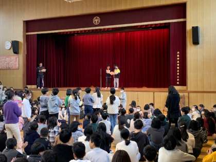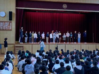 11月の体力アップ週間の鉄棒検定に一生懸命取り組んだ人たちが、運動委員会から表彰されました。