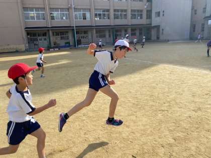 が、鬼ごっこで走る4年生の姿、何か違う・・・。