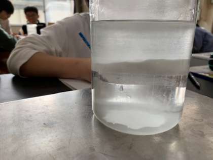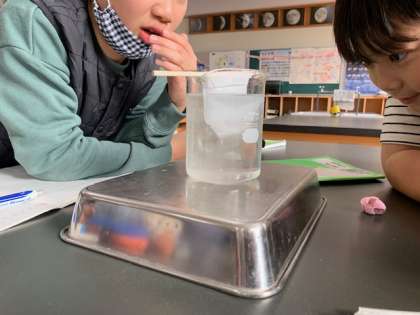 昨日は食塩を、今日は片栗粉を溶かしています。