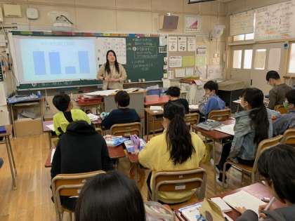 それぞれの平均値を使った比べ方が有効であることを見つけた後、教科書のデータと自分たちのデータを比較。