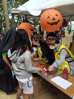 10月25日(日)に晴明丘中央公園で、晴明丘地域活動協議会主催による「晴明丘ハロウィン秋祭り」が開催されました。ハロウィン祭りということで、たくさん仮装した人たちで会場は大賑わいでした。本校からはPTAの方々が焼きそばとフランクフルトを出店しました。また、昨年度に引き続き、本校のダンスクラブ「せーめーみなみーズ」の6人が舞台発表に参加しました。この日の発表に向けて、当日都合により参加できなかったメンバーと一緒に一生懸命、練習に取り組んできました。