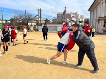 2組の女子のパワーにびっくり!怖がらずに体当たりしていくところに選手の皆さんもびっくり!
