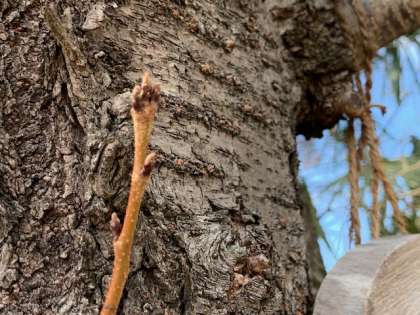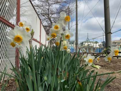 桜の芽、水仙の花。