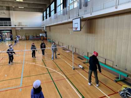 講堂では他にも、バトミントンやバレーに興じました。