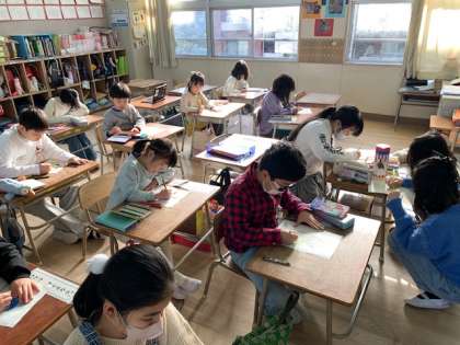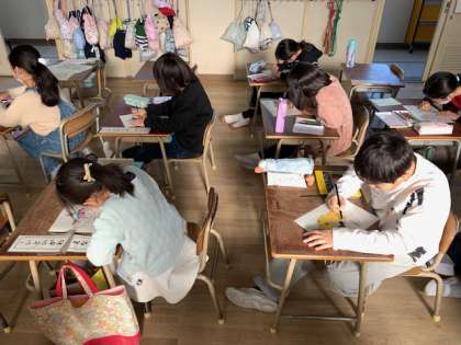 静かーな教室では、黙々と塗り絵が行われていました。