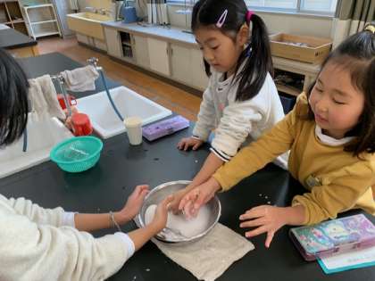 片栗粉と水を使った化学実験です。