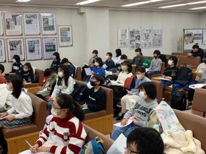 記念撮影をした後は、新聞ができるまでの行程について詳しいお話を聞かせていただきました。