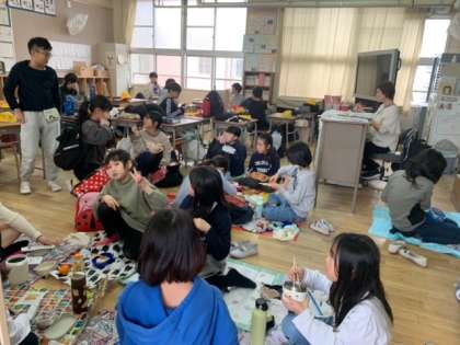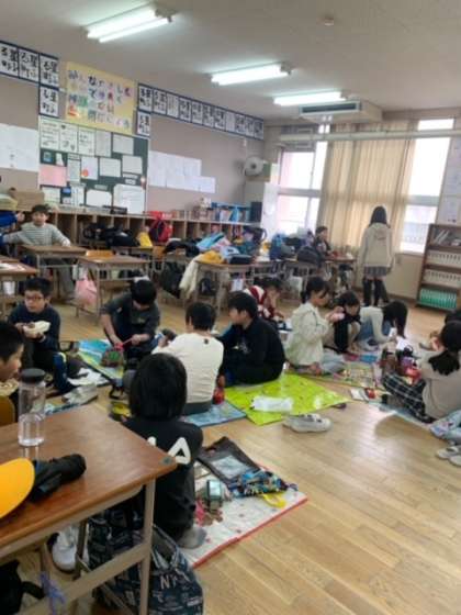 社会見学から帰ってきた5年生は、教室でちょっぴり遅めのお弁当。