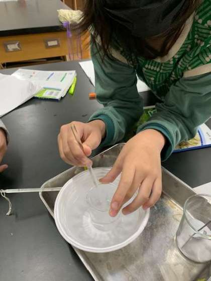 今日はお湯で湯煎しながら、ミョウバンを水に溶かしていきました。