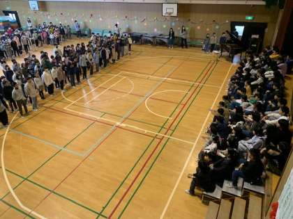 在校生から最後のプレゼント、全校合唱「ありがとう」。