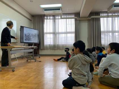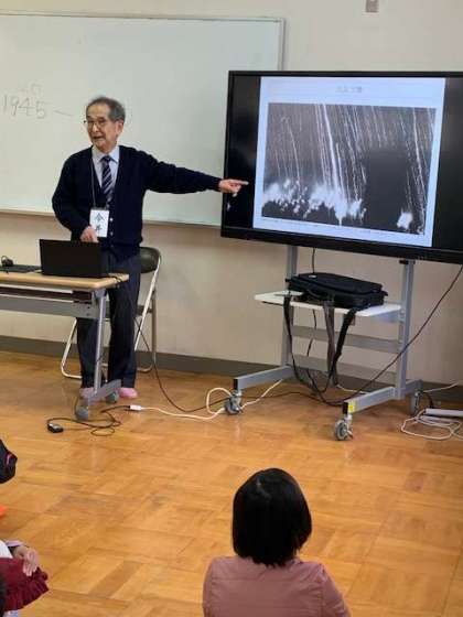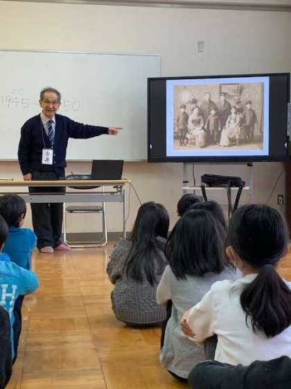3年社会。北畠1丁目南町会長の今井逸郎様から貴重な写真や映像と合わせて「昔の大阪」についてのお話をしていただきました。