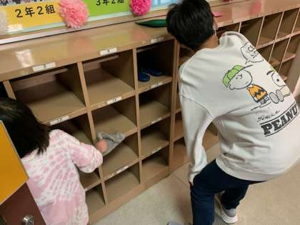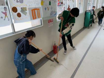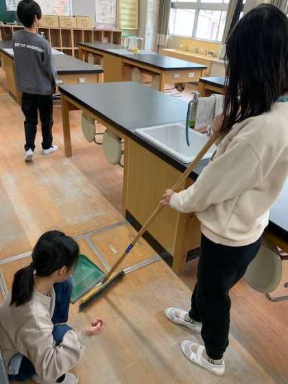 みなみん班のリーダーとして率先して掃除に取り組む6年生。