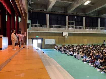 今日は1年生と4年生の代表児童が、それぞれに1年間の印象的な出来事についての作文を朗読披露しました。