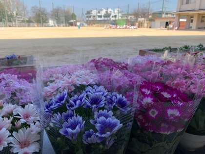 卒業式を彩るサイネリアとマーガレットが届きました。