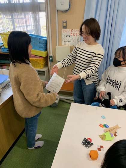 恒例の折り紙に感謝状の授与。
