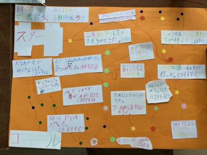 頑張った出来事は〇マス進む、残念な出来事は〇ます戻ったり、1回休んだり・・・。