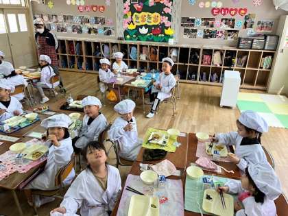 給食の時間は楽しくて、ついつい箸が止まってしまいがち。