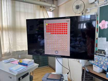 ネズミが画面いっぱいのりんごを食べ尽くすのが先か、それとも1年生が給食を食べ終わるのが先か?