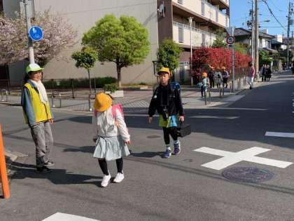 写真左手の方は、今年新たに見守り隊に希望してくださった校区にお住まいの方です。