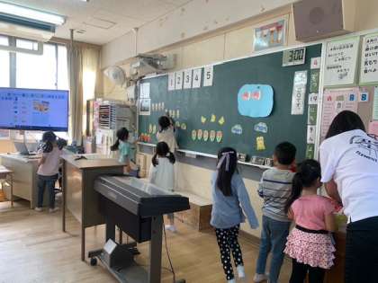 入学してからスタートカリキュラムによる学習活動を続ける1年生。