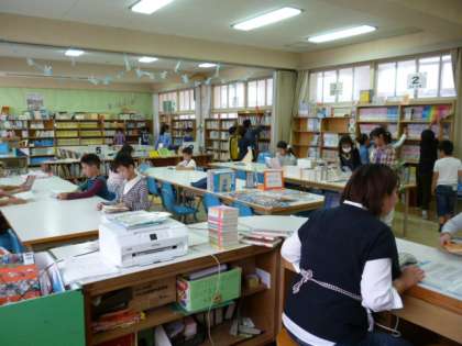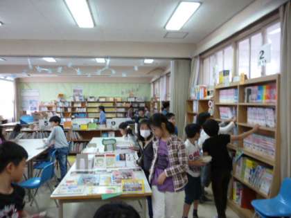 毎週月曜日に学校図書館補助員の方が休み時間に図書室を開けてくれています。子どもたちは、本の返却や貸し出しを行ったり、図書室で静かに本を読んだりしてすごしています。