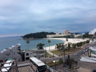 今晩お世話になるホテル三楽荘に無事到着しました。部屋からの眺めは最高です。