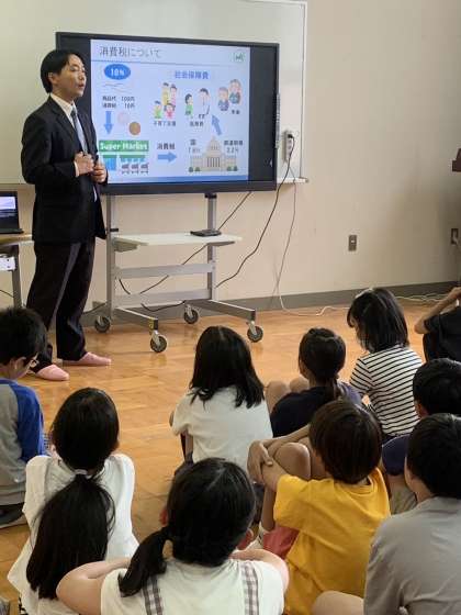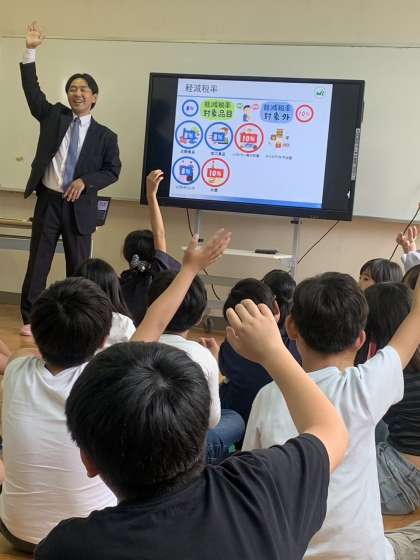 阿倍野税務署の方にお越しいただき、消費税、軽減税率、税金の使い道などなどについて、教えていただきました。