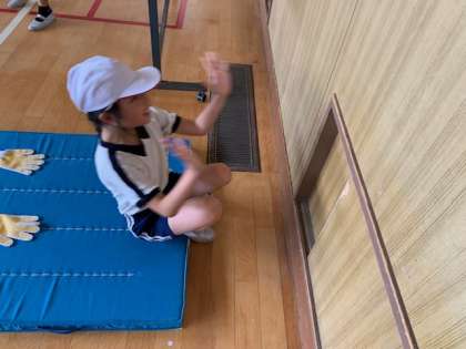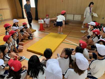 さて、それぞれにパワーアップできたところで、みんなのお手本となる後転のお披露目。