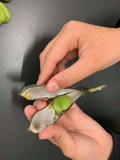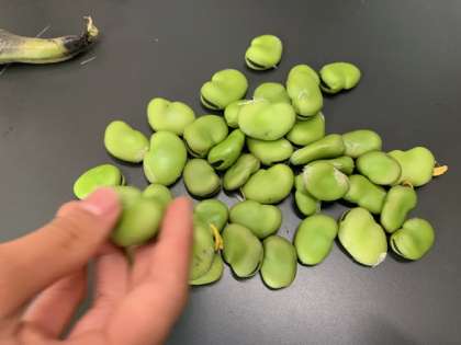 少し黒くなった鞘の中にも、鮮やかな黄緑の豆がちゃんと残っていました。
