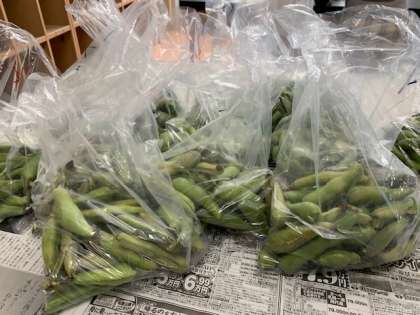 先日収穫したソラマメ、全校児童分とまではいきませんでしたが、すべての学級に相当数を配ることができました。