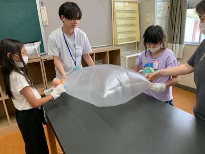 科学クラブでゴミ袋を使った熱気球を作りました。