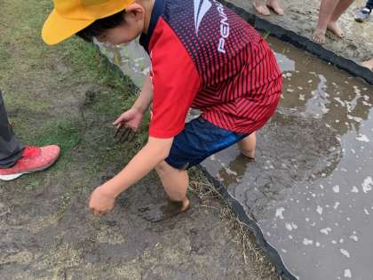 手も足も泥だらけ。