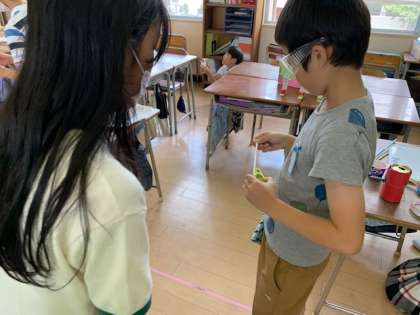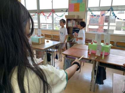 4年1組は「ワクワク射的」