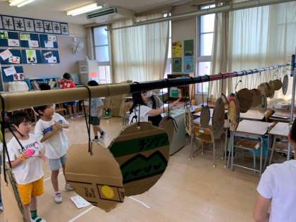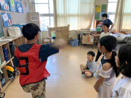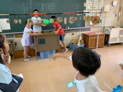 プラスチックボールや新聞紙のボールを投げて高得点を狙います。