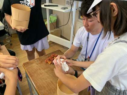 やっぱり、素早く皮でくるむ作業には熟練の技が必要なようです。