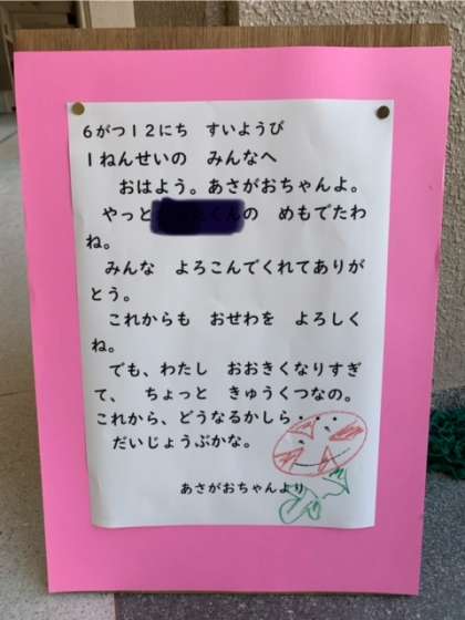 久しぶりにあさがおちゃんから手紙が届きました。