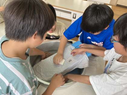 6年 家庭科「洗濯実習」。