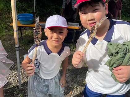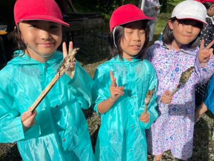 雨上がりの現場から、魚つかみの中継をお届けしました。