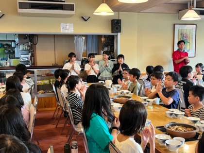 しっかり食べて、この後のキャンプファイアー楽しむぞ!