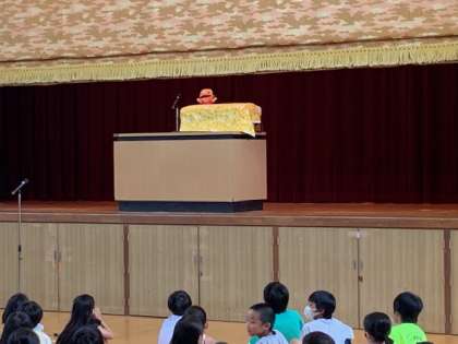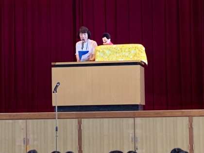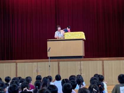 校長先生のお話の時にお手伝いで登場したのは、お馴染みのあのキャラクター。