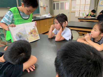 昨日はみなみん班での折り鶴集会、今日はみなみん班での読み聞かせ。