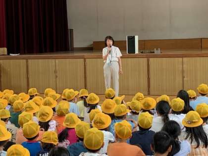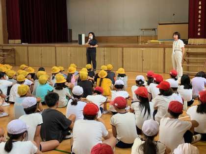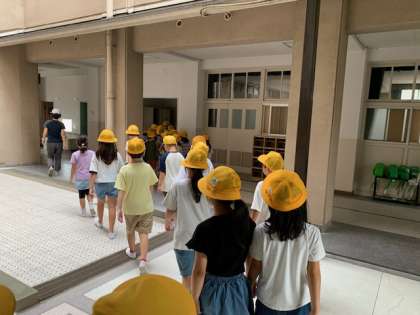 一次避難後の講話で、校長先生が夏休み中の南海トラフ地震臨時情報に関連して、防災意識が高まったかどうかを子どもたちに訊ねると、多くの子どもたちが地震への備えをしているという反応を返していました。