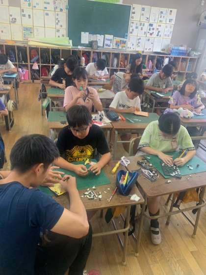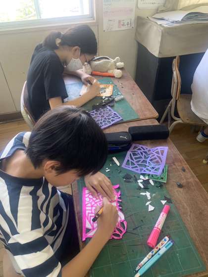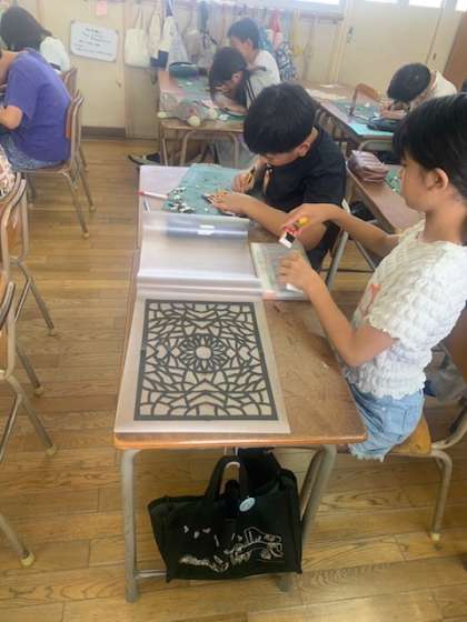 そして、今、ここ帝塚山の地で、5年生が手作りのステンドグラスを製作しています。