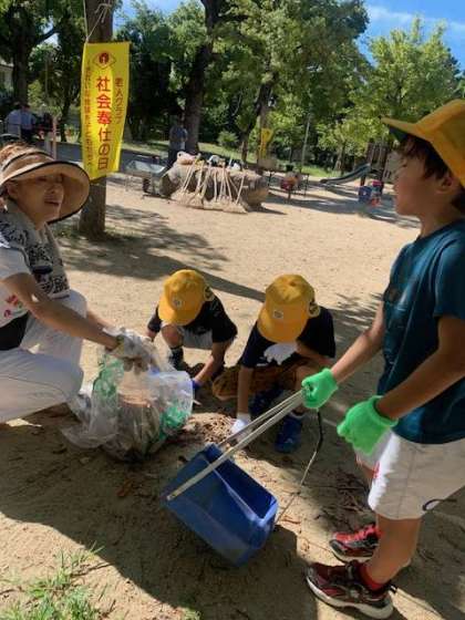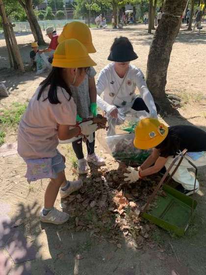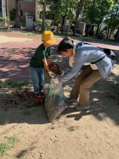 早朝から集めて頂いていた木の葉やゴミを子ども達が大きな袋にどんどん入れていきました。