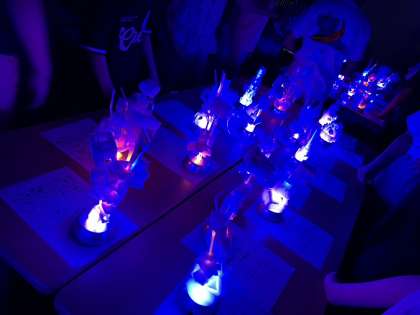 試行錯誤しながら作った作品が完成し、多目的室に並べました。