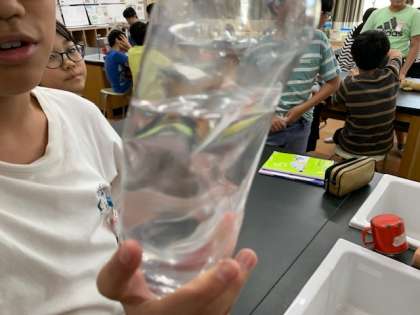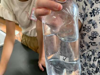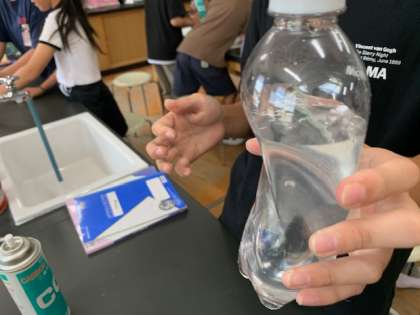 ペットボトルに半分程、お水を入れまして、そこにある気体を「プシュー」と約5秒間噴射してから、栓をしてペットボトルをシェークすると・・・