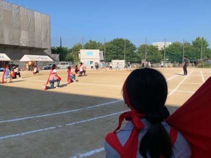 みんなから少し離れたところで、力の限り旗を振り続けている応援団の旗手。