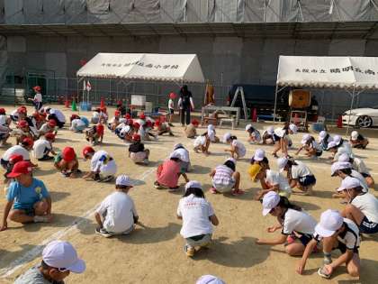 運動会で怪我をしないように、みんなで運動場の小石を拾いましょう。