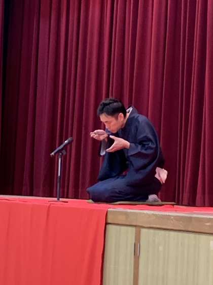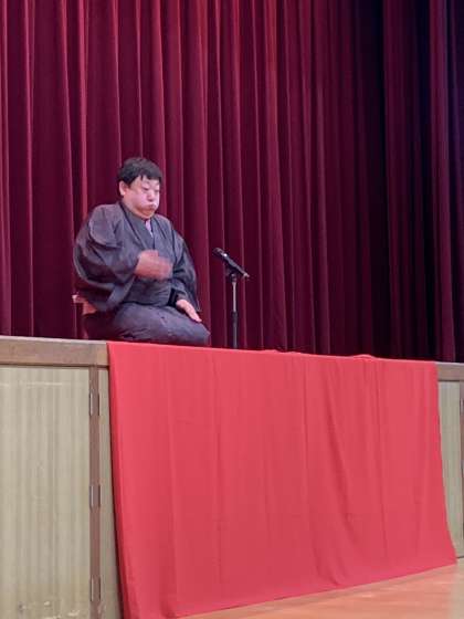 森乃石松さん、桂ちょうばさんの話芸に抱腹絶倒の子どもたち。