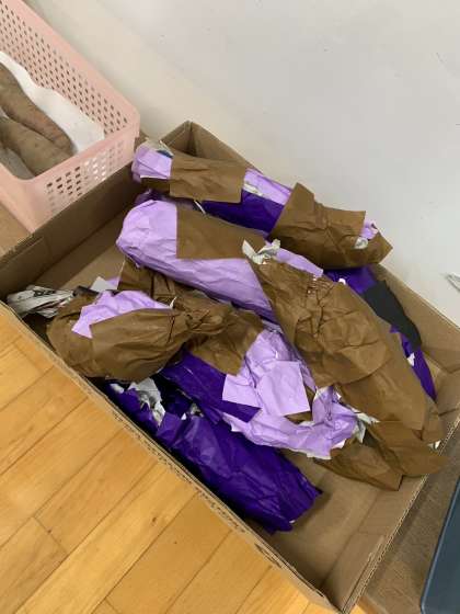 ダンボール箱いっぱいにできたおいもさん。